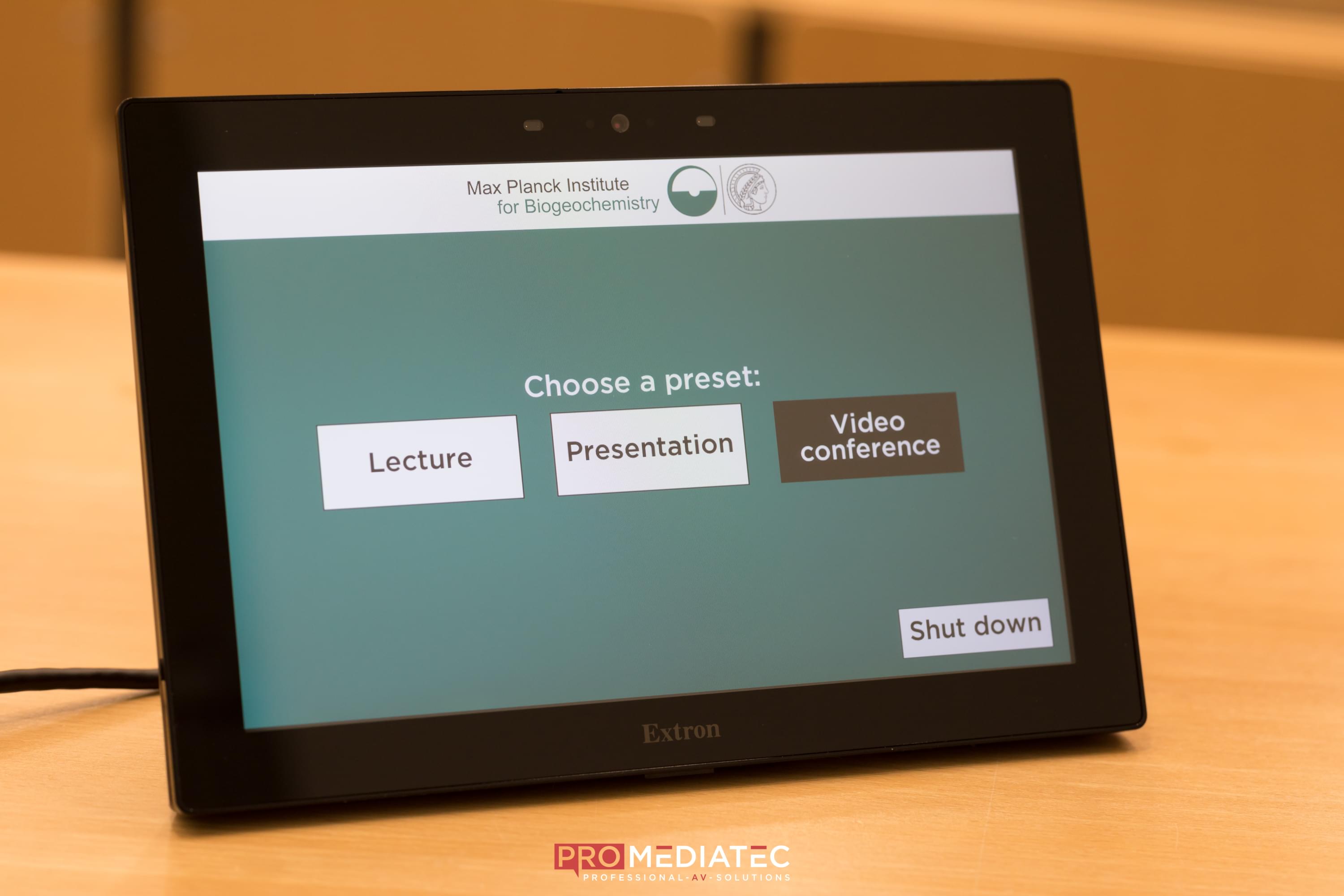 Mit Hilfe einer Mediensteuerung lässt sich ein Raum problemlos steuern. Quellenumschaltung, Lautstärkeregelung oder Kamerasteuerung lassen sich unkompliziert mit einem Touchpanel bedienen, ohne erst Fernbedienung und Schalter zu suchen.